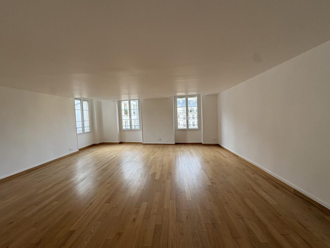 Beau 4 pièces avec vue sur la place Sainte Opportune en 4ème étage sans ascenseur comprenant une entrée, un vaste double séjour de 37.09 m², deux chambres, une cuisine séparée aménagée non équipée, une salle d’eau/WC, une salle de bains / WC, un grand dressing
