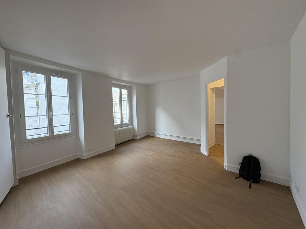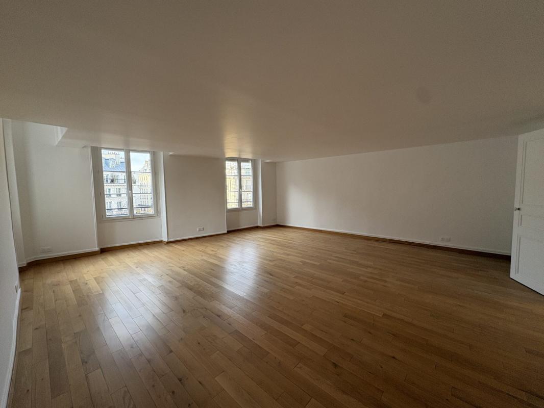 Beau 4 pièces avec vue sur la place Sainte Opportune en 4ème étage sans ascenseur comprenant une entrée, un vaste double séjour de 37.09 m², deux chambres, une cuisine séparée aménagée non équipée, une salle d’eau/WC, une salle de bains / WC, un grand dressing