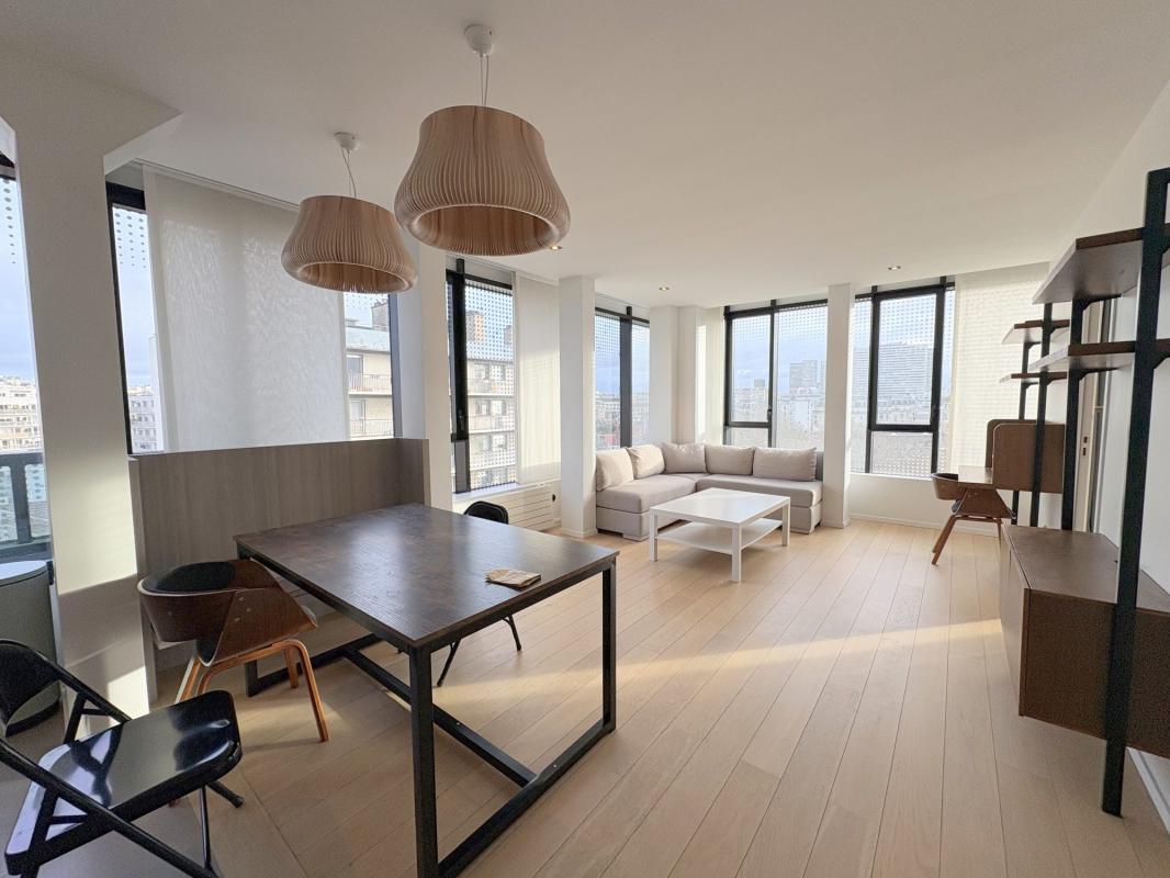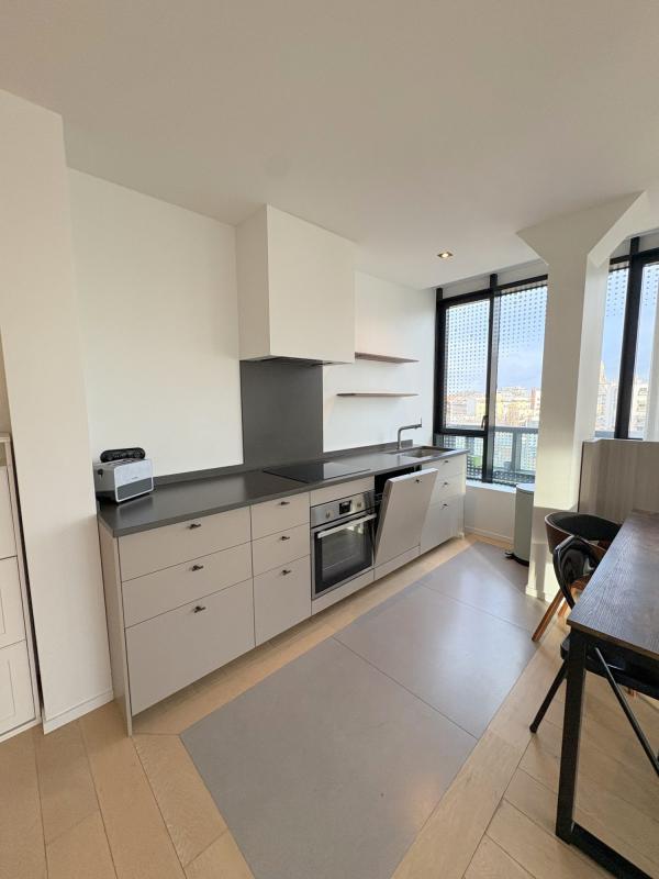 Dans un bel immeuble récent de standing, un appartement au 7eme étage avec asc, comprenant une entrée avec placards, grande piece de séjour avec coin salle à manger, cuisine ouverte meublée et entièrement équipée, chambre avec literie neuve et placards, salle de bains avec baignoire et douche, wc séparé. Appartement tres clair (avec grande baie vitrée sur tout le séjour et la chambre avec vue dégagée sur Paris) et tres calme. L’appartement est entièrement meublé.