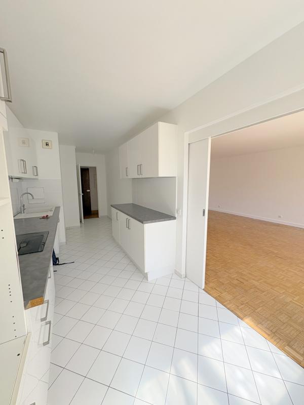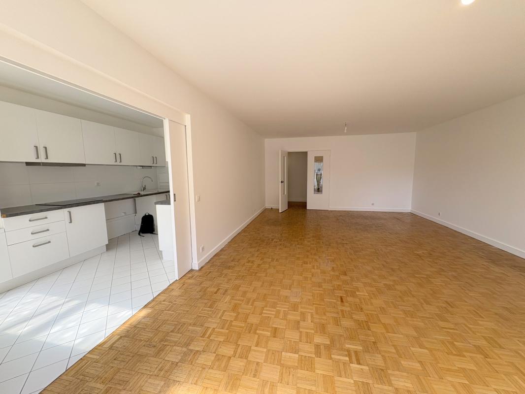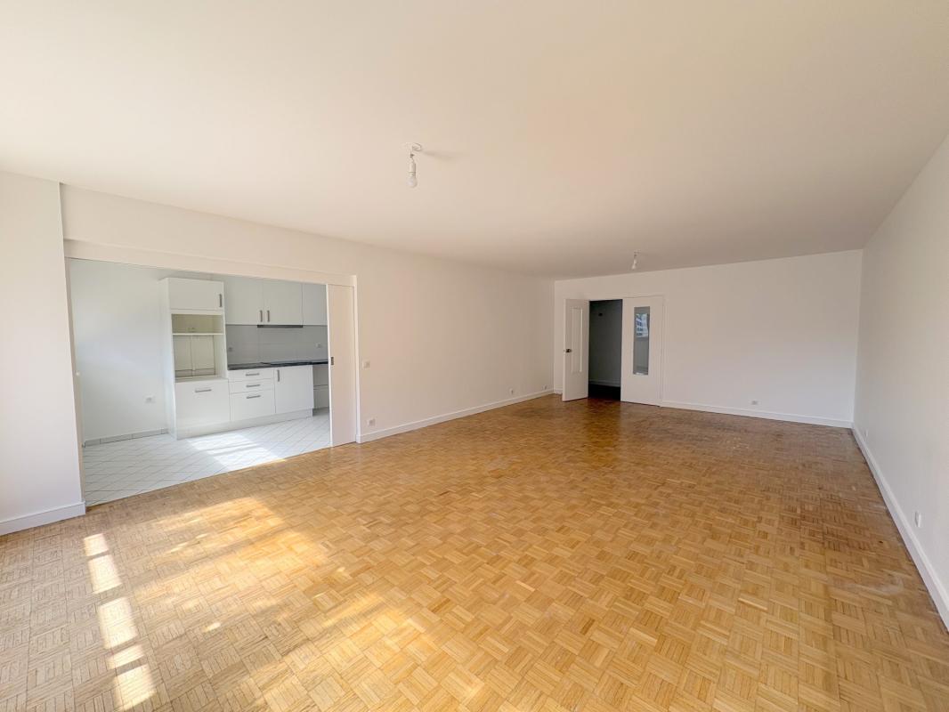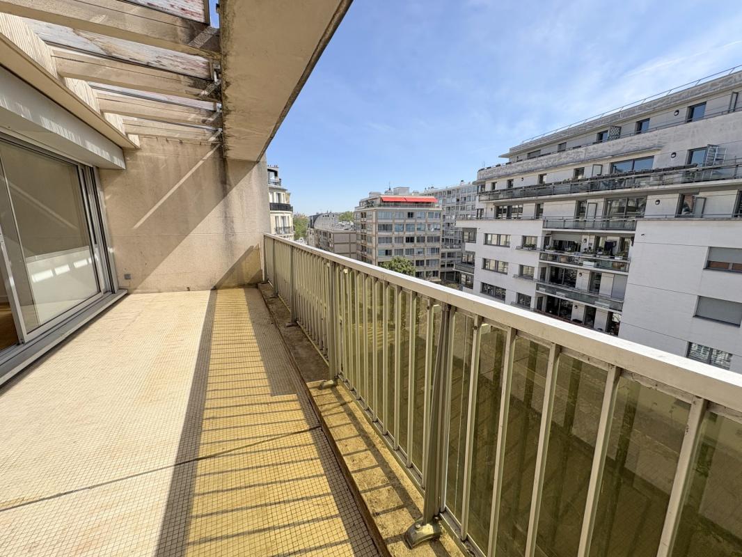 Au 6eme étage, agréable 5 pièces comprenant une entrée, un grand séjour / cuisine ouverte de 52.05 m² donnant sur un balcon terrasse d’environ 17.26 m², trois chambres sur jardin au calme, trois dressings, une salle de bains avec wc, une salle de douche, un wc séparés. Chauffage et eau chaude collectifs. Cave et parking. Local vélos. Gardienne.